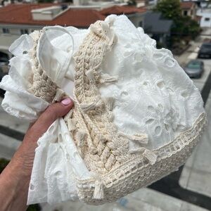 NWT Miss Charm Paris white lace crochet tassel strappy sundress L/XL coquette