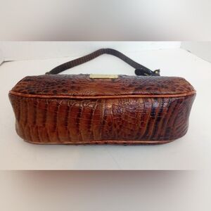 Gorgeous Brahmin Lacy Pecan Tri-Color croc embossed leather shoulder bag. Adjustable shoulder strap. Gold hardware, zip top closure, medallion charm hangtag. Outer back slip pocket. Brahmin signature chamois lining with interior zip pocket, two slip pockets, two pen holders and key clip. Small to medium size, measures approximately 11x8x3. Lightly used, in very good condition. Ships same or next day.