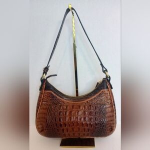 Brahmin Lacy Pecan Tri-Color Crocodile Embossed Leather Shoulder Bag