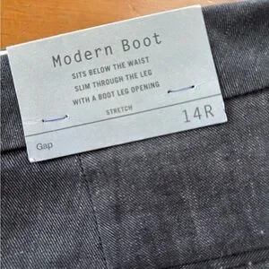 Stylish bootcut jeans by GAP. Dark gray color. Slim through the leg. Boot leg opening.
