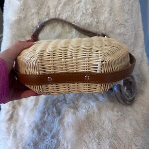 NWT Loulu Woven Rattan & Brown Leather Shoulder Bag | Boho Chic Summer Purse