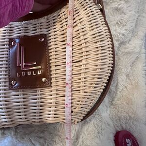 Brand new with tags Loulu woven rattan handbag featuring rich brown faux leather trim and gold hardware ✨
