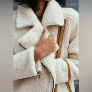 Faherty Jacket Women’s Large Montana Moto Coat Shearling Sherpa Jacket