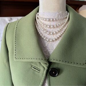 This elegant green women's jacket offers a sophisticated look with its classic design.