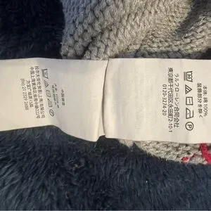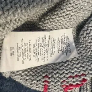 Logo Cotton. Features a light gray color with an American flag motif. Perfect for casual wear. Good used condition- some typical general sweater wear as seen in pictures.