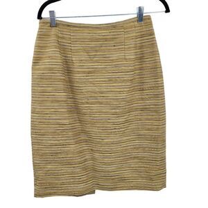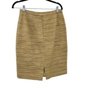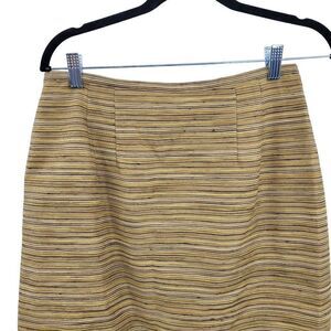 Vintage 80's Kay Unger Skirt Suit 10 Mustard Striped Alpaca Front Tie Tea Mod