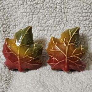 Vintage Ceramic Pottery Maple Leaf Salt & Pepper Shakers Fall Ombre Thanksgiving