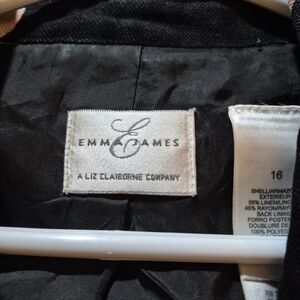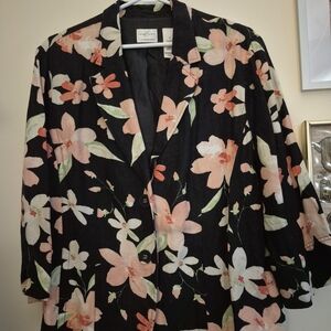 Elegant black jacket with a vibrant floral pattern, perfect for adding a touch of sophistication to any outfit. From a non-smoking home.