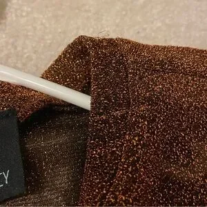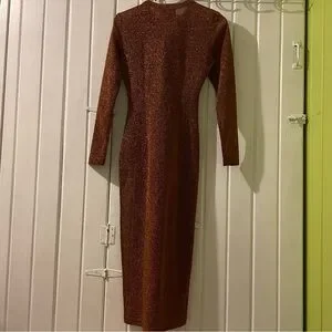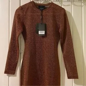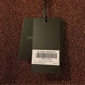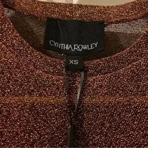 NWT and no defects except 1 very tiny metallic thread pull (last picture). Shoulder/neck area and is not noticeable when wearing. Size X-small Cynthia Rowley copper metallic tease sheer dress. Midi length. It is a stretchy form fitted look and a see through mesh so a body suit or bralette and briefs is recommended. Armpit to armpit 15” and centerback length is 45 1/2”. Retail $245. Price firm. Tote 23.