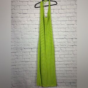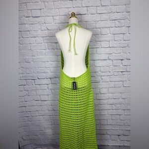 NWT pretty little thing SHAPE LIME CROCHET HALTERNECK MAXI DRESS SIZE L