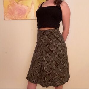 Brooks Brothers Black and Brown Plaid A-Line Skirt