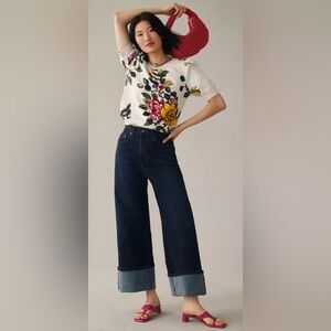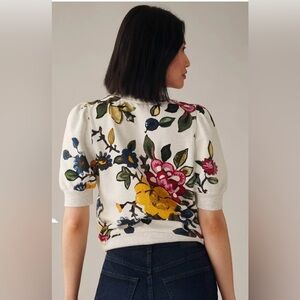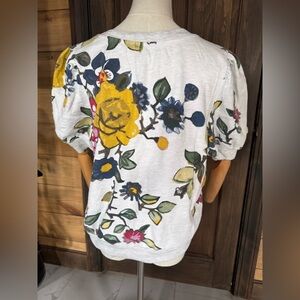 T.La by Anthropology - Multicolor Floral Short puffed Sleeve Top - size Large