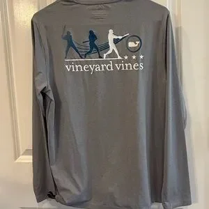Vineyard Vines Performance Long Sleeve Tee Youth XL 18 Gray Baseball Graphic