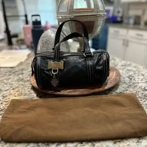 Elegant vintage Gucci black leather mini Boston bag with amazing hang tag. This bag is not new and has minor signs of wear throughout. She is in excellent condition and comes with dustbag. Please see all photos and ask any questions prior to bidding