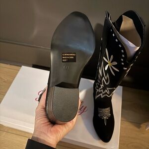 These are the Kolly Daisy Boots from the Krista Horton x Pink Lily collab. These have never been worn and have stayed in the box, in perfect condition. These are sold out on the Pink Lily website. They’re super cute and stylish! Perfect for spring/summer!