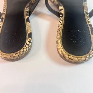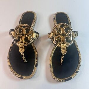 Tory Burch Miller Sandals 8M Snake Print Gold Logo Thong Flip Flop Leather