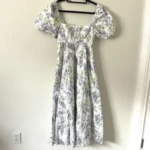 NWT Hill House Sz XS Matilda Midi Dress Wisteria White Floral Bridgerton Cottage