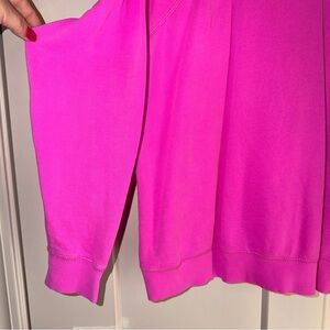 Bright pink sweatshirt. Soft and comfortable. Perfect for casual wear. Reposting because it was too small for me. Note: This runs like a size medium. Additional questions? Just ask! :)