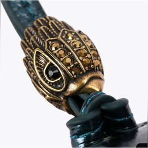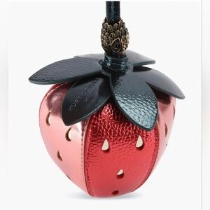 The statement strawberry charm features metallic pink and red petals with gold reflective seed' details. There green leaves accent the strap. Hook onto the favorite bag with a personal touch. Complete length: 29cm