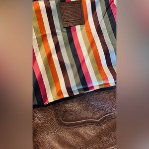 This beautiful Coach Thompson XL Legacy Hobo, model number 11374, is near vintage with tag still attached! This rare and special edition bag was released as part of Coach’s 65th Anniversary Legacy series with the vibrant multi-colored striped interior lining. It is a slouchy extra large hobo-style shoulder bag made from premium full-grain leather. The bag features antique brass hardware, including a signature large Coach medallion, original leather hangtag and distinctive strap buckles. It includes a prominent zippered front pocket and interior has a back zip pocket with 2 interior slip pockets. New with tags CHALA feather bag charm keychain is included to add to the boho vibe. Perfect for everyday use and holds just about anything you need!!!