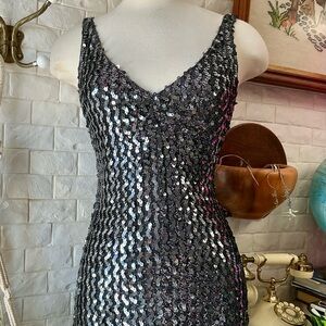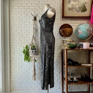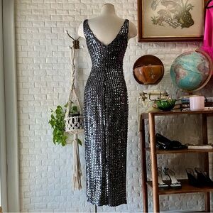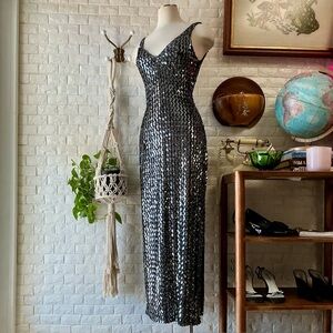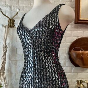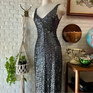 Vintage 1990s Climax by David Howard Body Contour Sequin Sleeveless Gown, Made in USA, Tag Size 5/6
