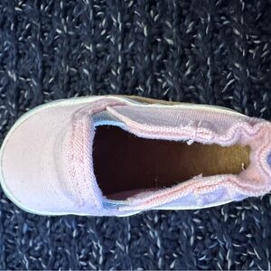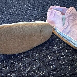 Robeez soft sole slip-on baby shoes in light pink.