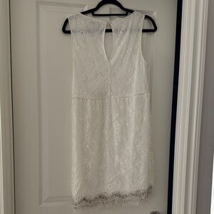 Chic white lace mini dress.