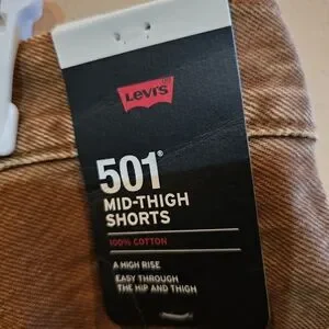 Stylish brown denim shorts by Levi's. Classic 501 design.