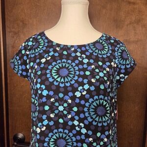Merona Blue and Aqua Patterned Short Sleeve Dress NWT