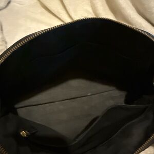 Chic Coach satchel in black. Features elegant gold hardware. Perfect for any occasion.