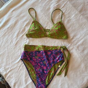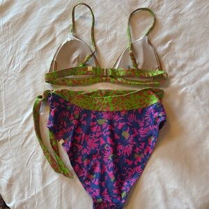 Bold floral bikini with vibrant green and pink design. Like new! Great time to stock up for Summer