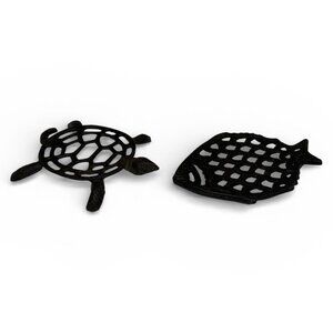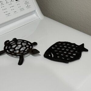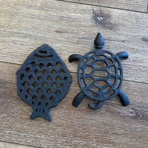 Vintage Cast Iron Fish Trivet and Turtle Trivet