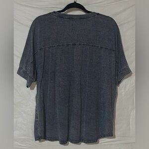 Jane and Delancey distressed blue short sleeve top. Soft fabric with a relaxed fit. Ideal for everyday wear.