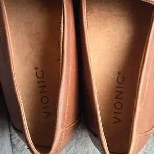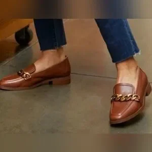 Vionic Mizelle Leather Gold Chain Loafer Shoes Brown Size 8.5
