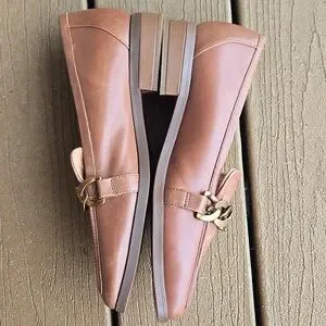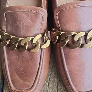 Vionic Mizelle Leather Gold Chain Loafer Shoes Brown