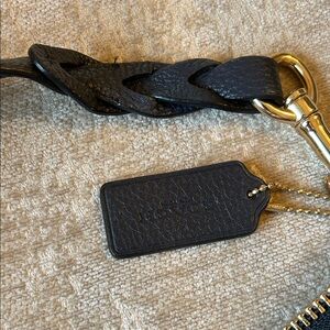 Chic Coach hobo bag in dark blue leather. Features a braided handle and gold-tone accents. Ideal for everyday use.
