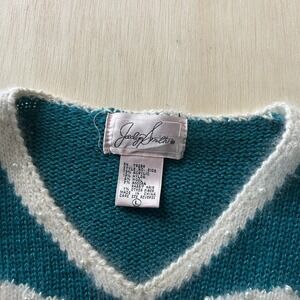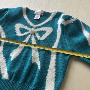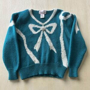 Vintage Jaclyn Smith Sweater Womens Large Blue Bow Beaded V Neck Holiday Knit