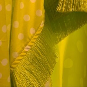LOVE THE QUEEN bold yellow maxi with bold white polka dots