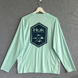 Practically New Huk shirt with performance fabric. Seafoam color. Perfect for active wear. Unisex