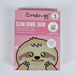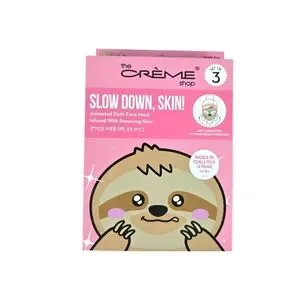 The Crème Shop, Animated Pink Sloth Face Mask, Set of 3, - Renewing Rose
