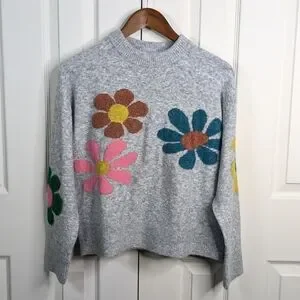 Natural Life Everyone’s Favorite Sweater XS Ash Flower Intarsia Daisy Whimsical