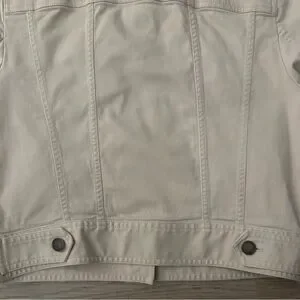 Button down with metal buttons embroidery down the front on and the back. Button on sleeves. Pockets on front.