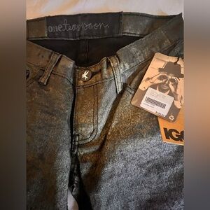 These One Teaspoon skinny jeans in a striking gold color offer a unique blend of style and comfort. The distressed finish adds a touch of edginess, making them perfect for a bold fashion statement. Crafted with attention to detail, these jeans are a must-have for any trendsetter.