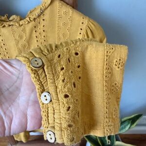Eri + Ali from Anthropologie. Vintage inspired mustard yellow blouse with beautiful details. Ties at the back.
