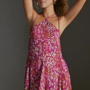 Anthropologie Pink Magenta Mini Floral Tank Dress Sundress Cocktail Halter Light
