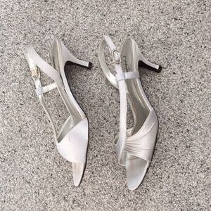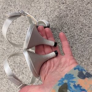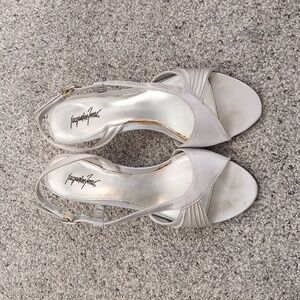 Step out in style with these elegant silver sandals. Perfect for any occasion, these shoes offer both comfort and sophistication. See photos for very slight wear. Size 7