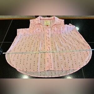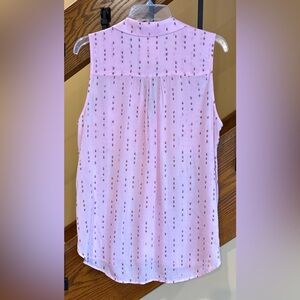 Anthropologie sleeveless blouse with button-up front. Light pink with subtle ant pattern.