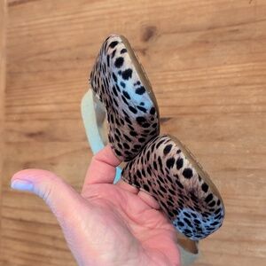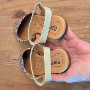 Born Brand Coco Comfort Slingback Flats. Size 7 Medium. Fabric upper and manmade materials.Closed pointer toes. Straps are elasticized. Tan/ Cream/ Black Leopard print. Light wear on straps and bottom soles. Super cute!