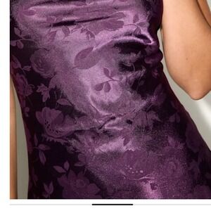 NWT Lulus Close to Your Heart Plum Purple Satin Jacquard Cowl Slip Mini Dress S