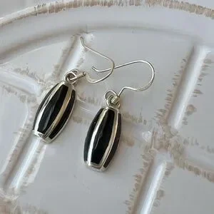 Elongated Dangle Earrings Vintage Sterling Silver 925 NOS Black Onyx